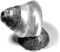 Riesenschnecke mit silbernen Verzierungen. Dieses Horn stammte aus Tibet, wo die